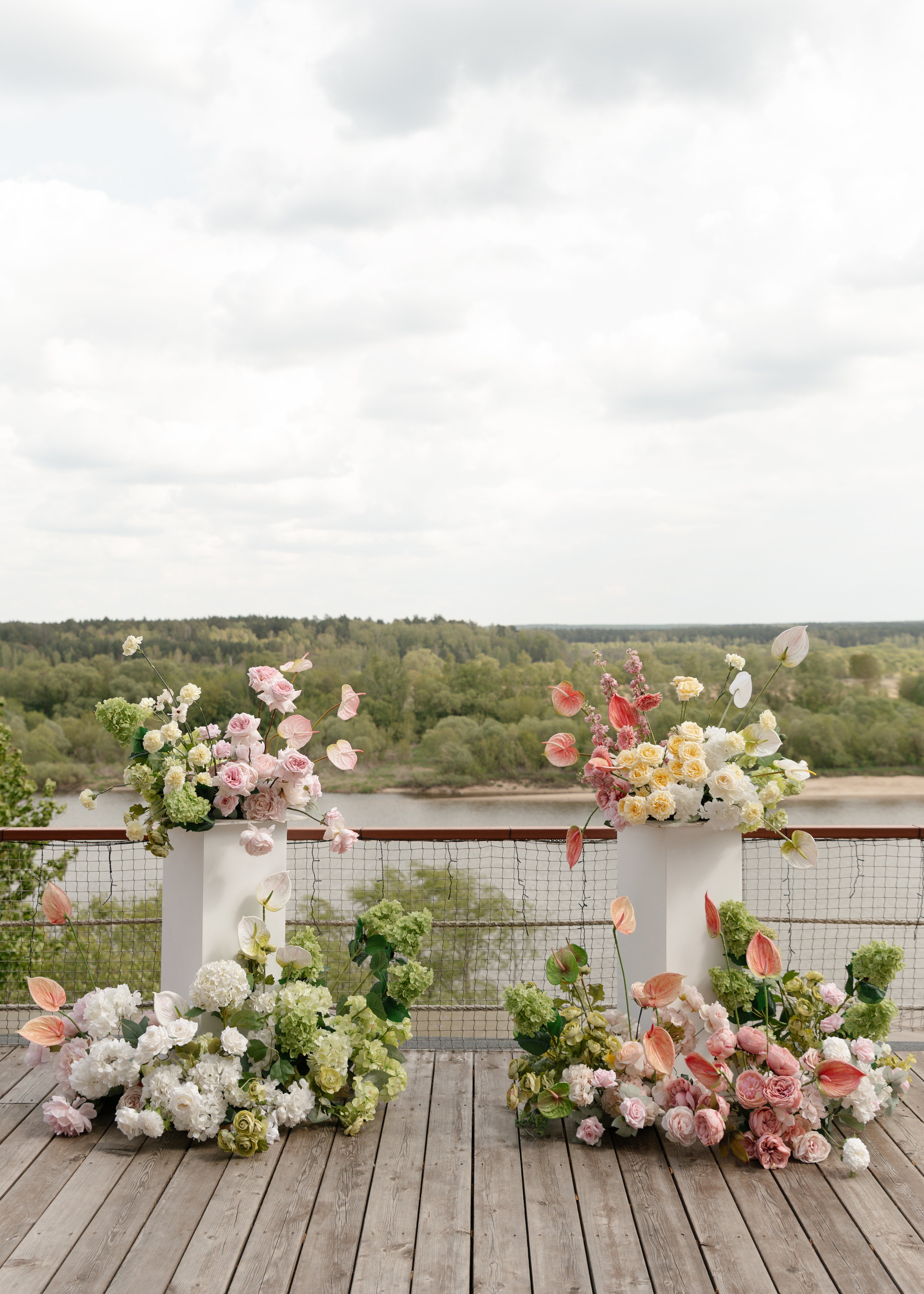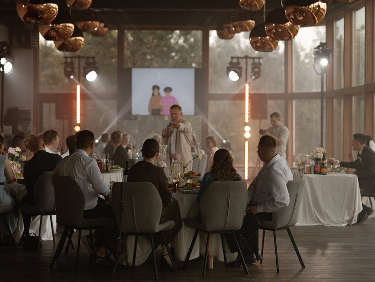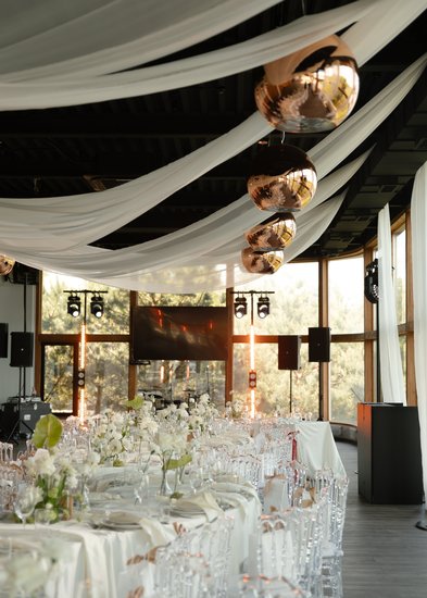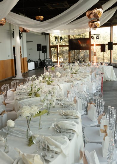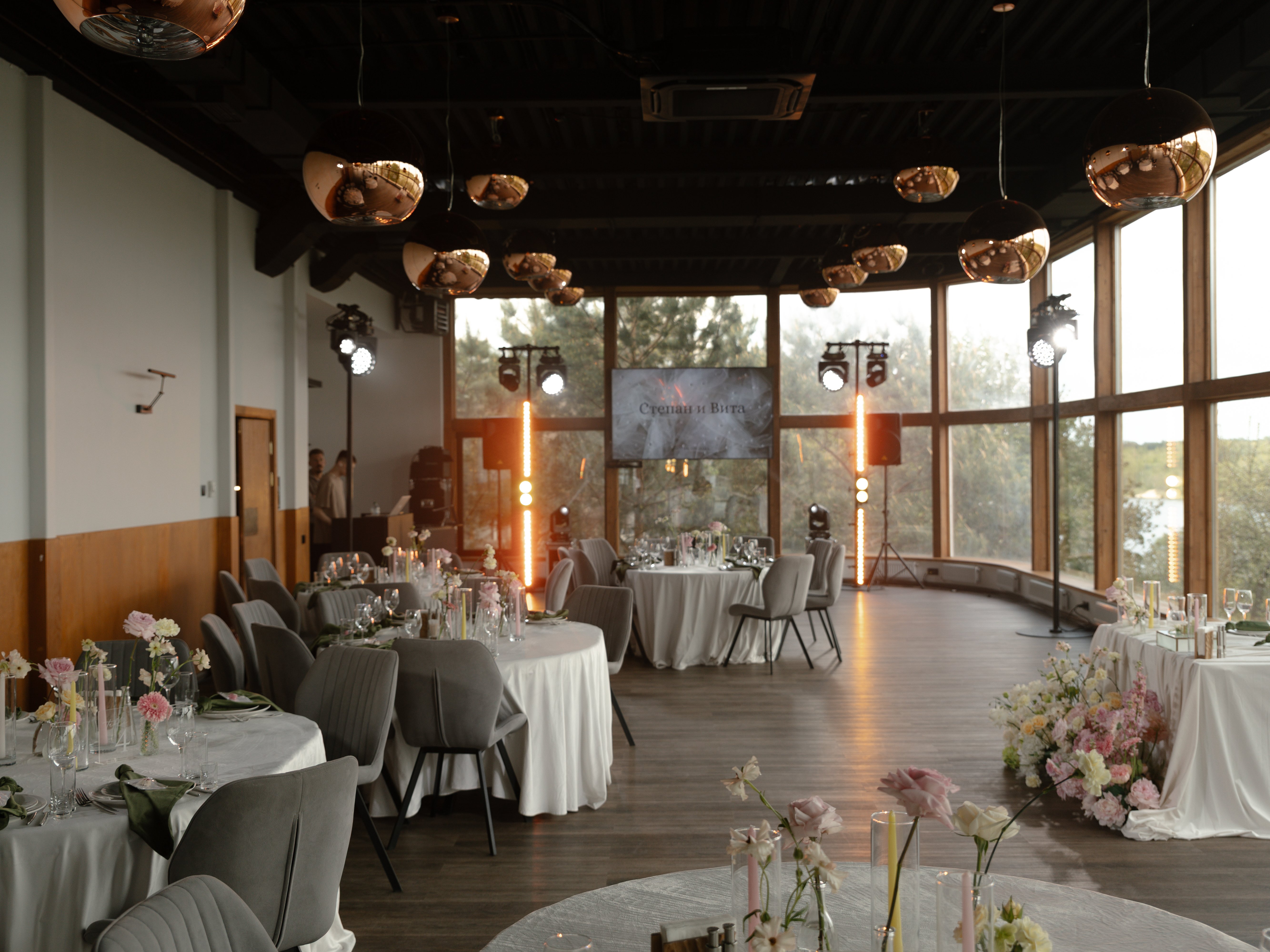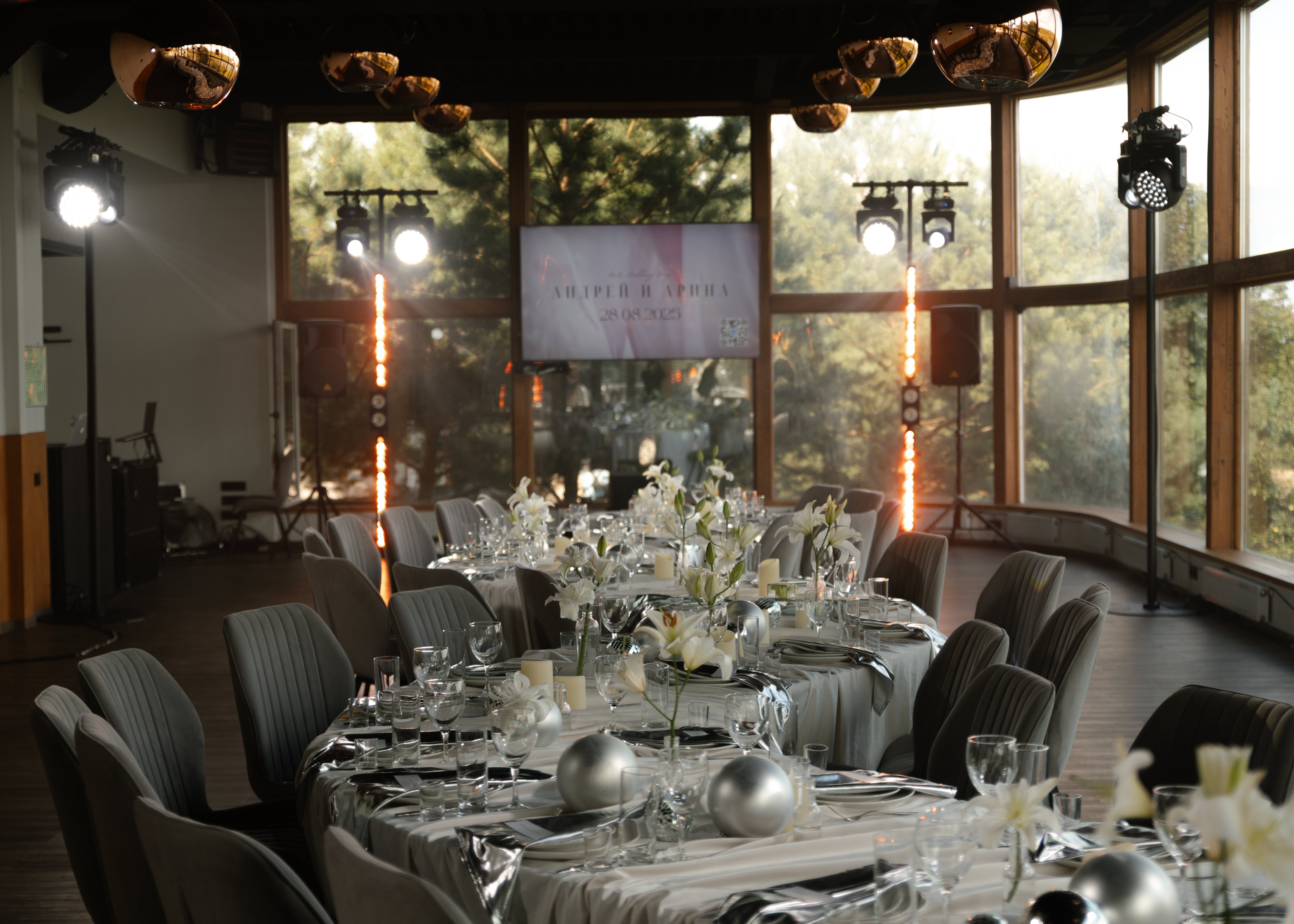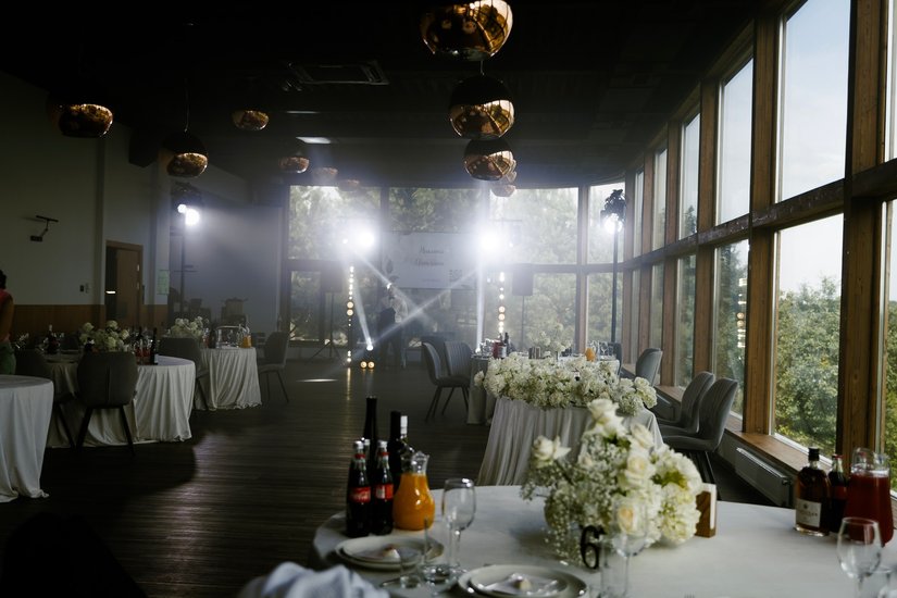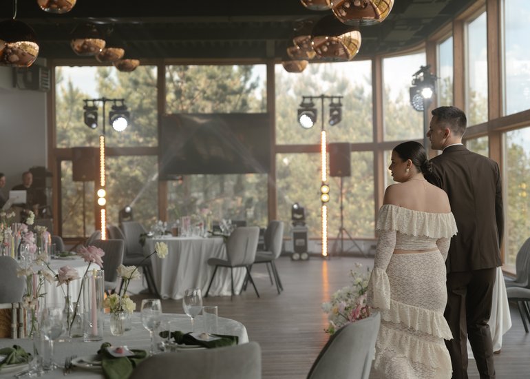 Для выездной регистрации гости часто выбирают большую террасу при банкетном зале или открытую площадку на центральной поляне «Солнечной» с шикарным видом на Оку.