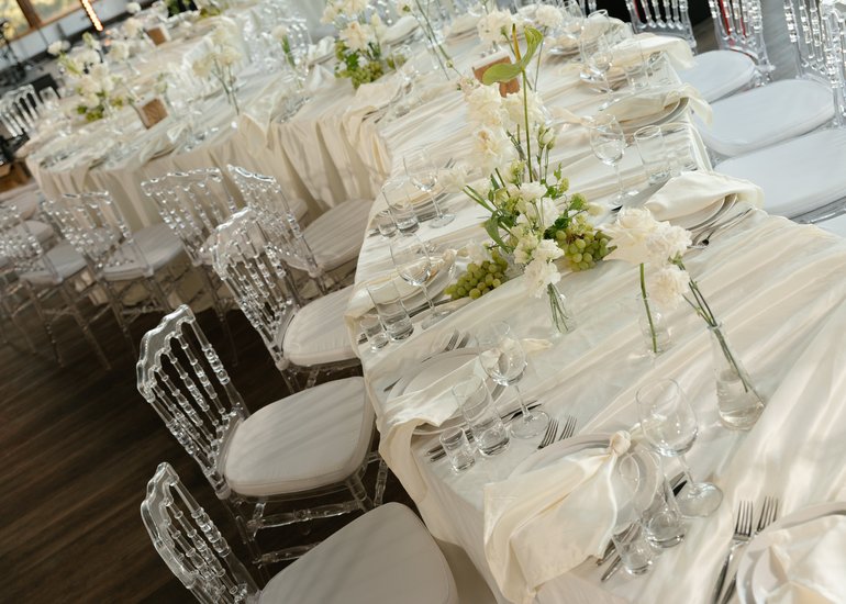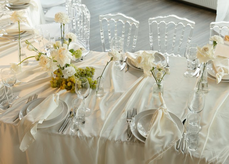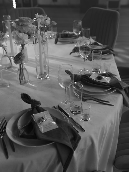 Для обеспечения разной вместимости гостей мы используем круглые, прямоугольные или большие овальные столы из массива бука.